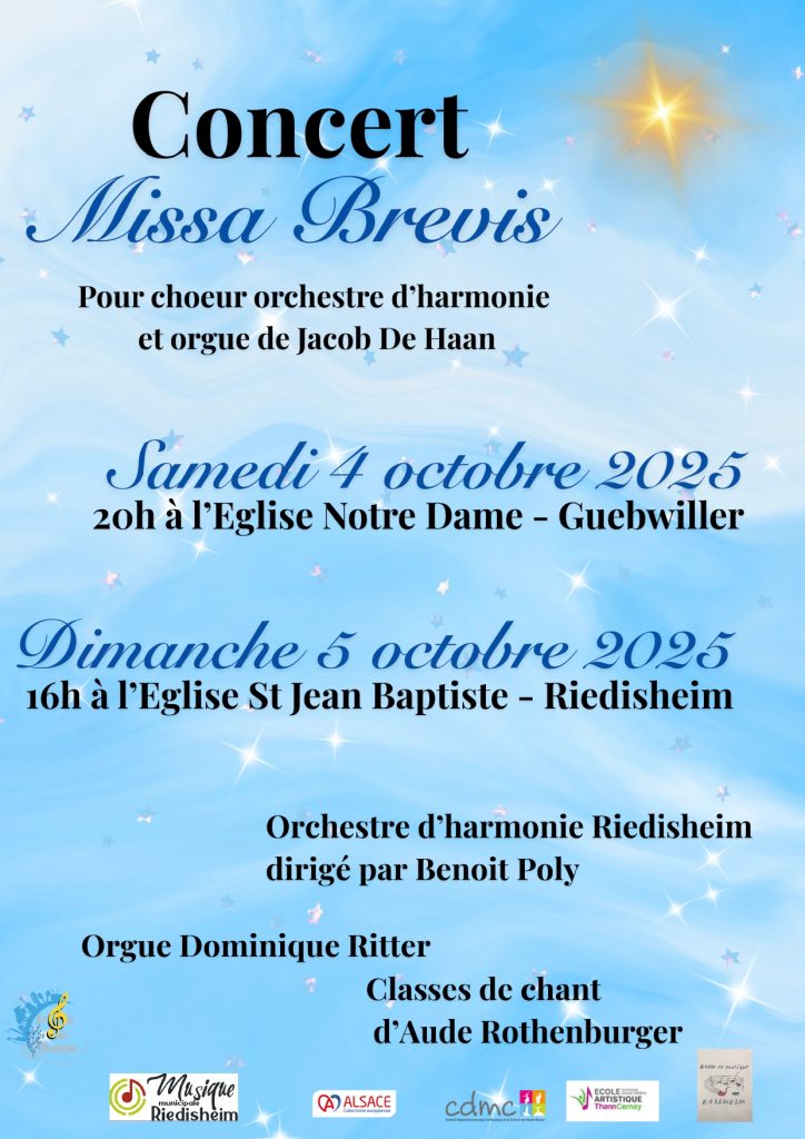 Rendez-vous samedi 4 octobre, 20h à l’Église Notre Dame de Guebwiller pour le concert de Missa Brevis, accompagnée de la classe de chant d’Aude Rothenburger.